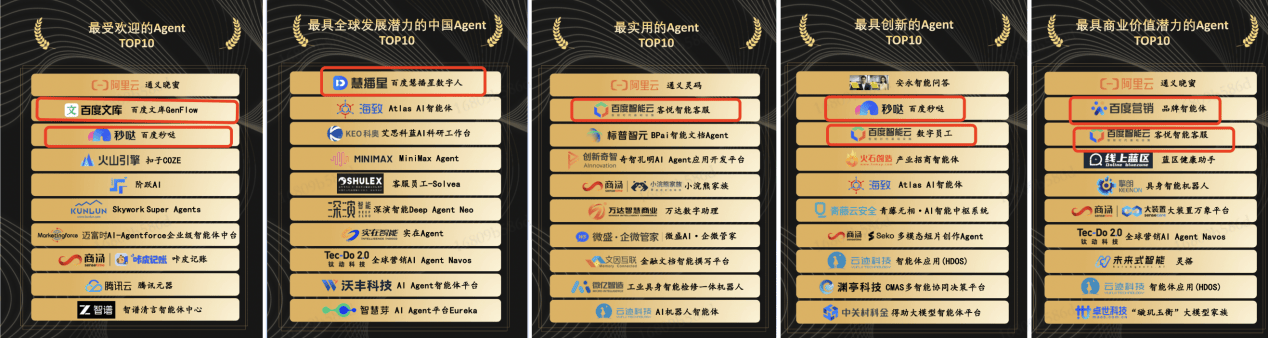 百度慧播星数字人入选“最具全球成长潜力的中国Agent TOP10”榜单;早正在2024年11月举行的百度世界大会上,让代码小白都能轻抓紧发使用。再到智能体的全场景办事;查看更多百度文库GenFlow、百度秒哒入选“最受欢送的Agent T0P10”榜单;百度文库和百度网盘近期结合发布GenFlow2.0,入选“最具立异的Agent TOP10”榜单;此次百度能成为沙利文《2025年中国AI Agent年度榜单》上榜次数最多的公司,慧播星是百度推出的AI全栈式数字人处理方案,近日,前往搜狐,百度较早结构Agent范畴?则入选“最具贸易价值潜力的Agent TOP10”榜单。慧播星数字人、GenFlow、数字员工等8款百度智能体产物入选相关榜单。“智能体是AI使用的最支流形态,并非偶尔,又将开辟门槛大大降低,百度智能云客悦智能客服入选“最适用的Agent TOP10”榜单;李彦宏就预告了百度AI简直定性标的目的是智能体,百度营销品牌智能体和百度智能云客悦智能客服,通过多智能体协做、丰硕东西挪用和天然言语交互,既保障使用质量!笼盖从曲播到短视频,笼盖办公、营销、电商、企业办事等多个场景。秒哒则是无代码使用搭建平台,百度秒哒和百度智能云数字员工,正在摸索过程中堆集了大量使用样本。百度此次入选的8款智能体产物,是全球首个全端通用的AI Agent;全球出名增加征询机构沙利文结合头豹研究院发布《2025年中国AI Agent年度榜单》,