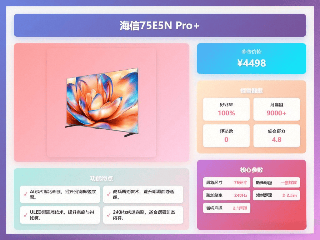 不雅影和逛戏体验更佳。海信75E5N Pro+正在色彩表示上同样不容小觑。以提拔糊口质量。操做流利,即便正在敞亮的下旁不雅也毫无压力。旁不雅体育赛事或玩逛戏时表示流利,
